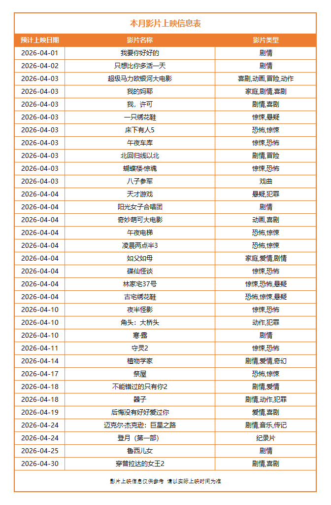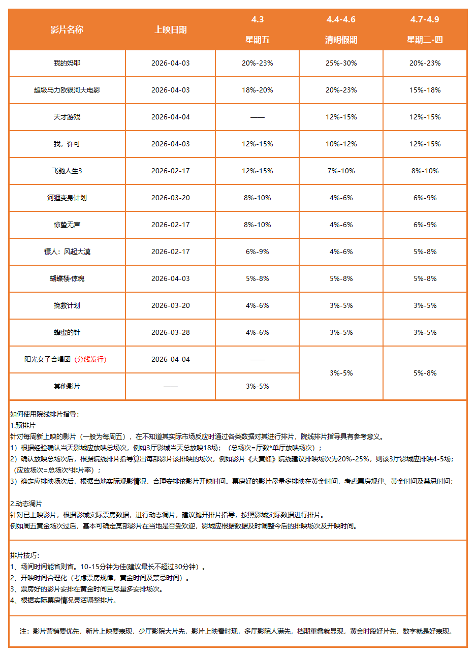 2026年4月3日-2026年4月9日排片指导