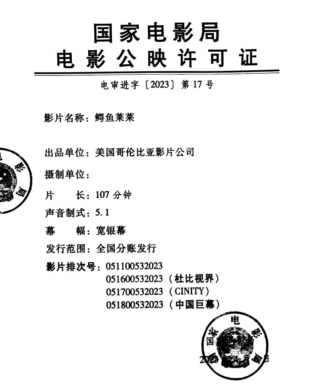 国内首映:2023年04月15日09:00:00