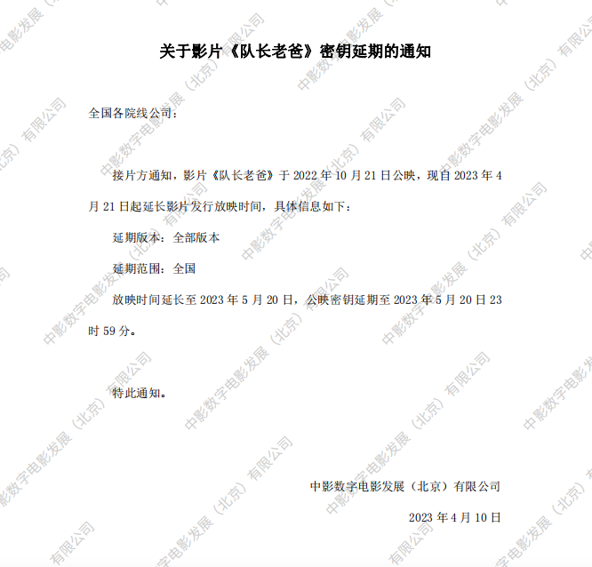 《队长老爸》密钥延期的通知
