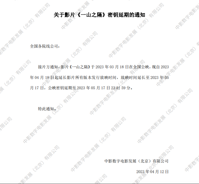 《一山之隔》密钥延期的通知