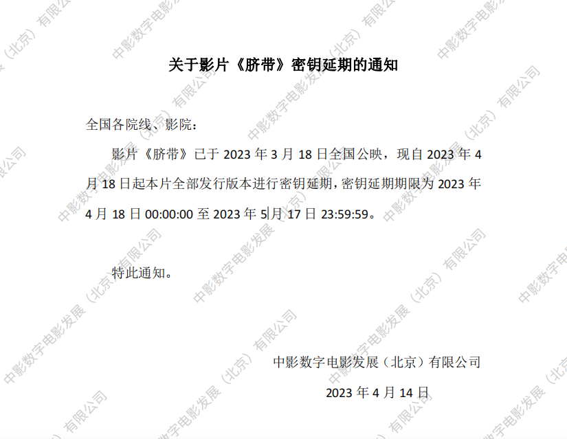 《脐带》密钥延期的通知