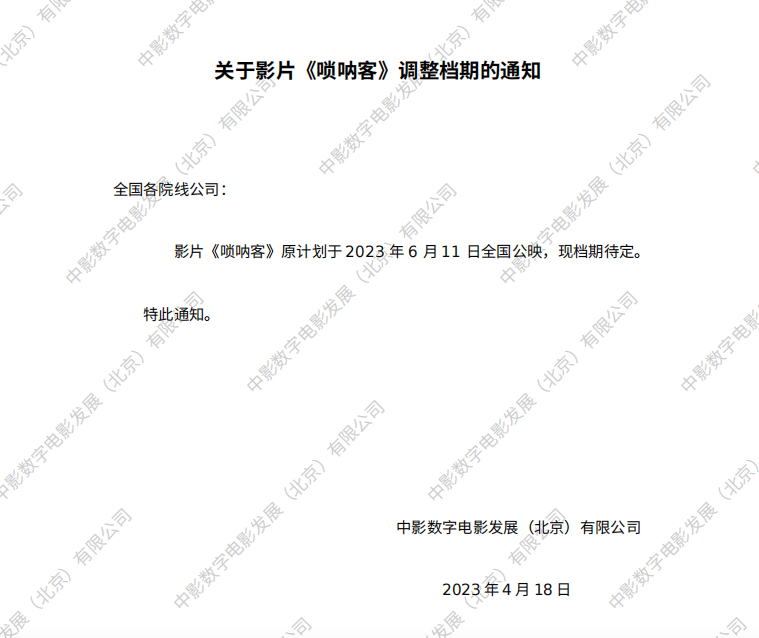 《唢呐客》调整档期的通知