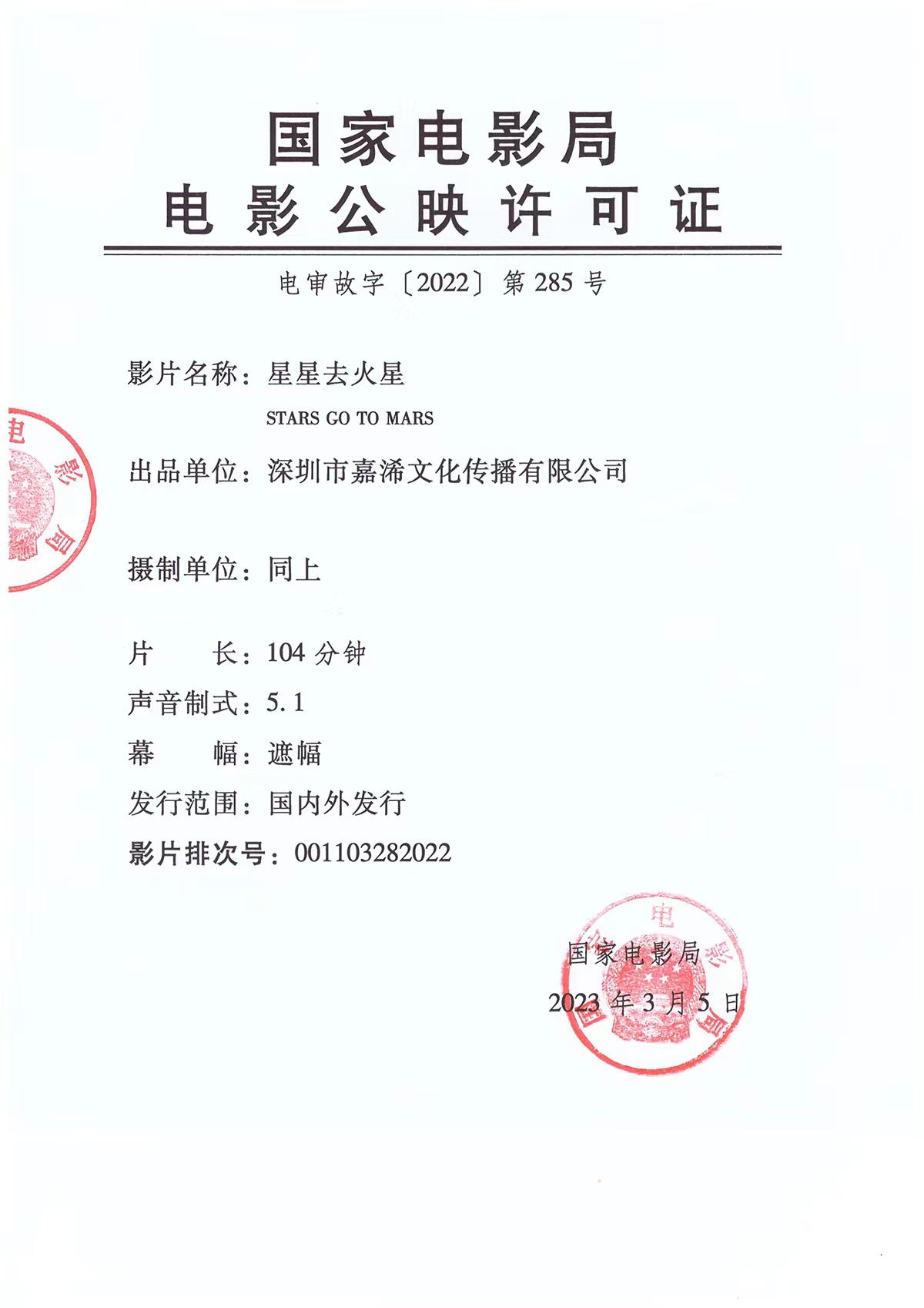 《星星去火星》发行通知