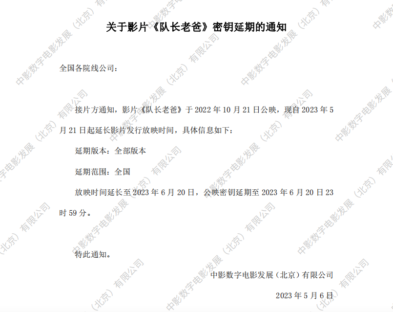 《队长老爸》密钥延期的通知