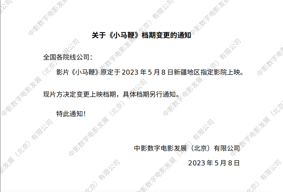 《小马鞭》档期变更的通知
