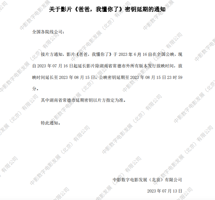 《爸爸,我懂你了》密钥延期的通知