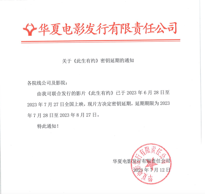 《此生有约》密钥延期的通知