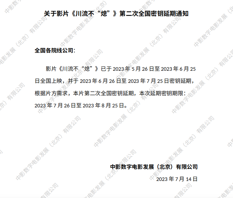 《川流不“熄”》第二次全国密钥延期的通知