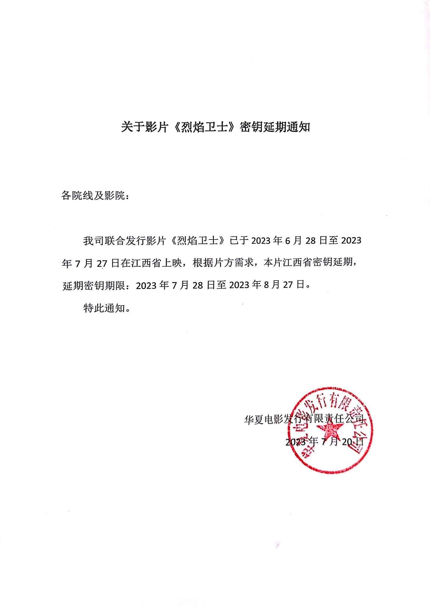 《烈焰卫士》密钥延期的通知