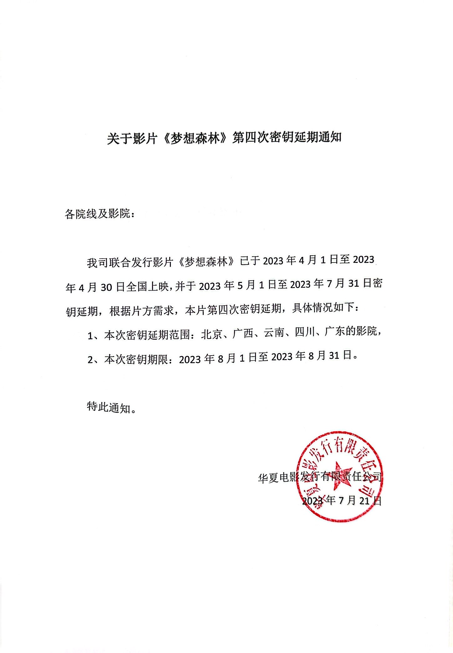 《梦想森林》第四次全国密钥延期的通知