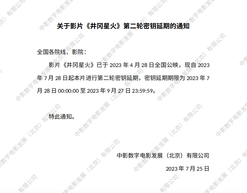 《井冈星火》第二轮密钥延期的通知