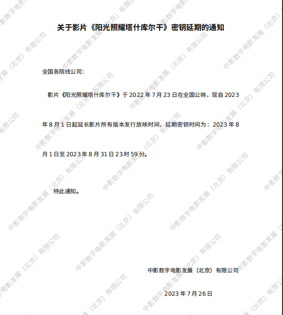 《阳光照耀塔什库尔干》密钥延期的通知