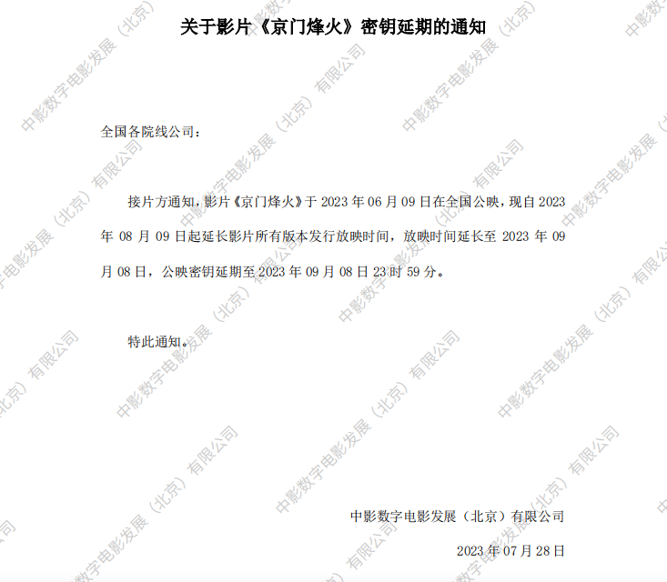 《京门烽火》密钥延期的通知