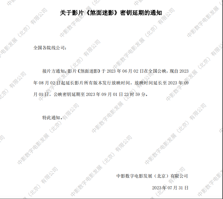 《煞面迷影》密钥延期的通知