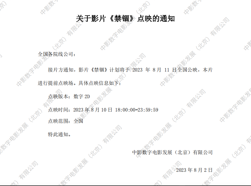 《禁锢》点映的通知