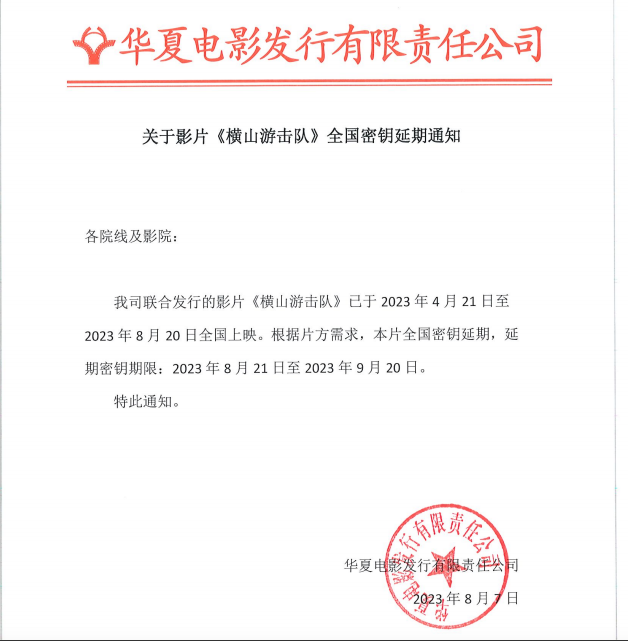 《横山游击队》全国密钥的延期通知
