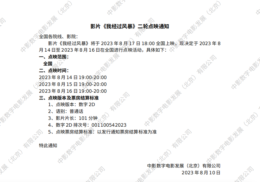 《我经过风暴》二轮点映的通知