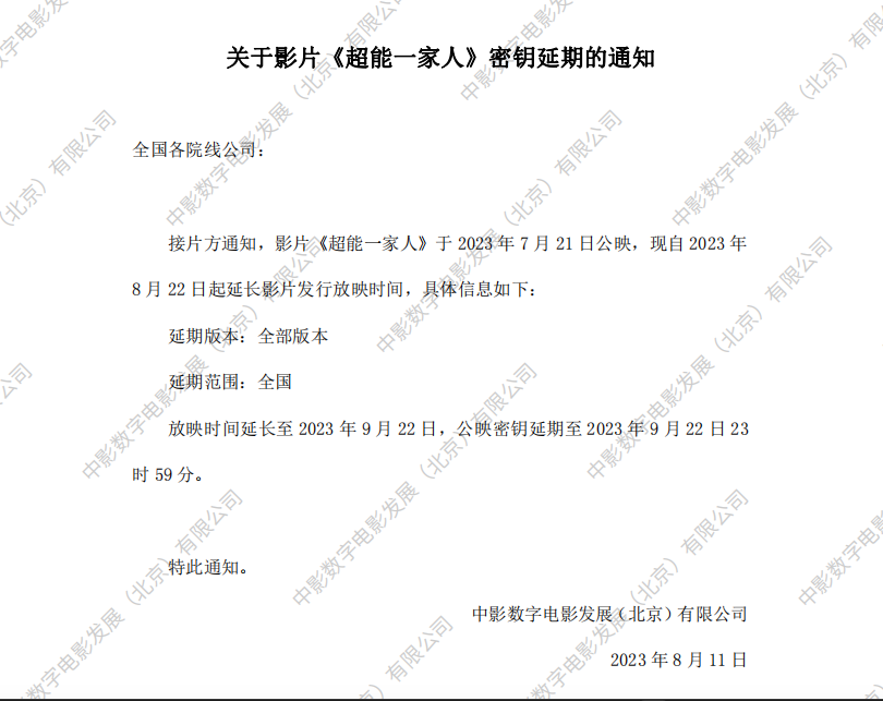 《超能一家人》密钥延期的通知