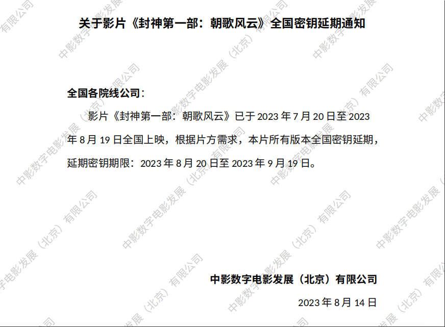 《封神第一部:朝歌风云》全国密钥延期的通知