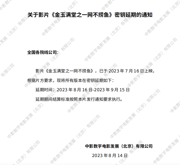 《金玉满堂之一网不捞鱼》密钥延期的通知