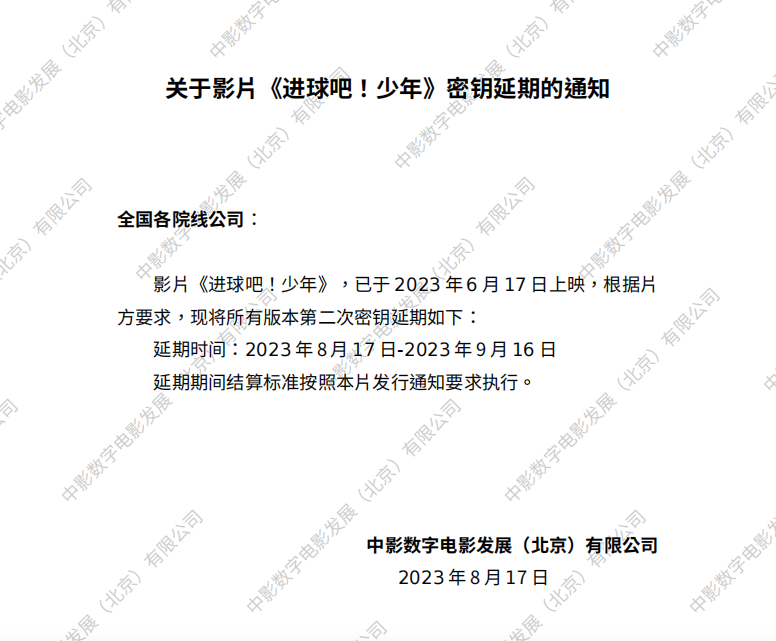 《进球吧!少年》密钥延期的通知
