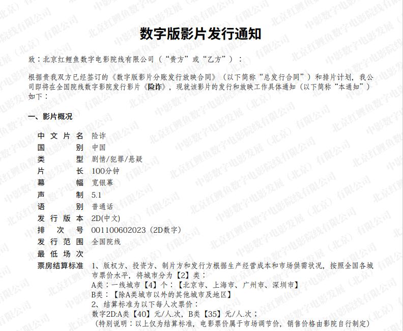 《险诈》发行通知