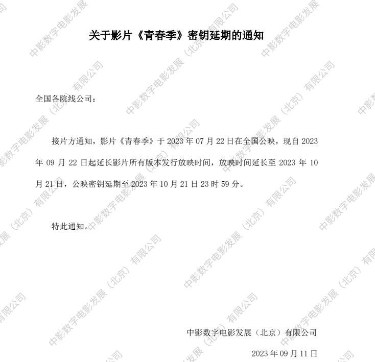 关于影片《地瓜味的冰激凌》密钥延期的通知