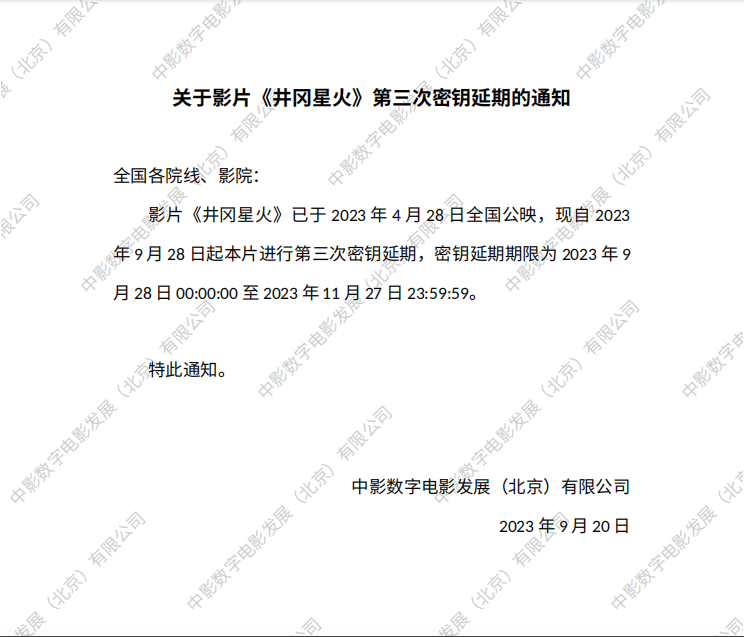 《井冈星火》第三次密钥延期的通知