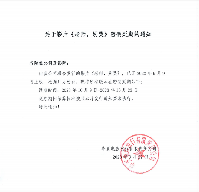 《老师,别哭》密钥延期的通知