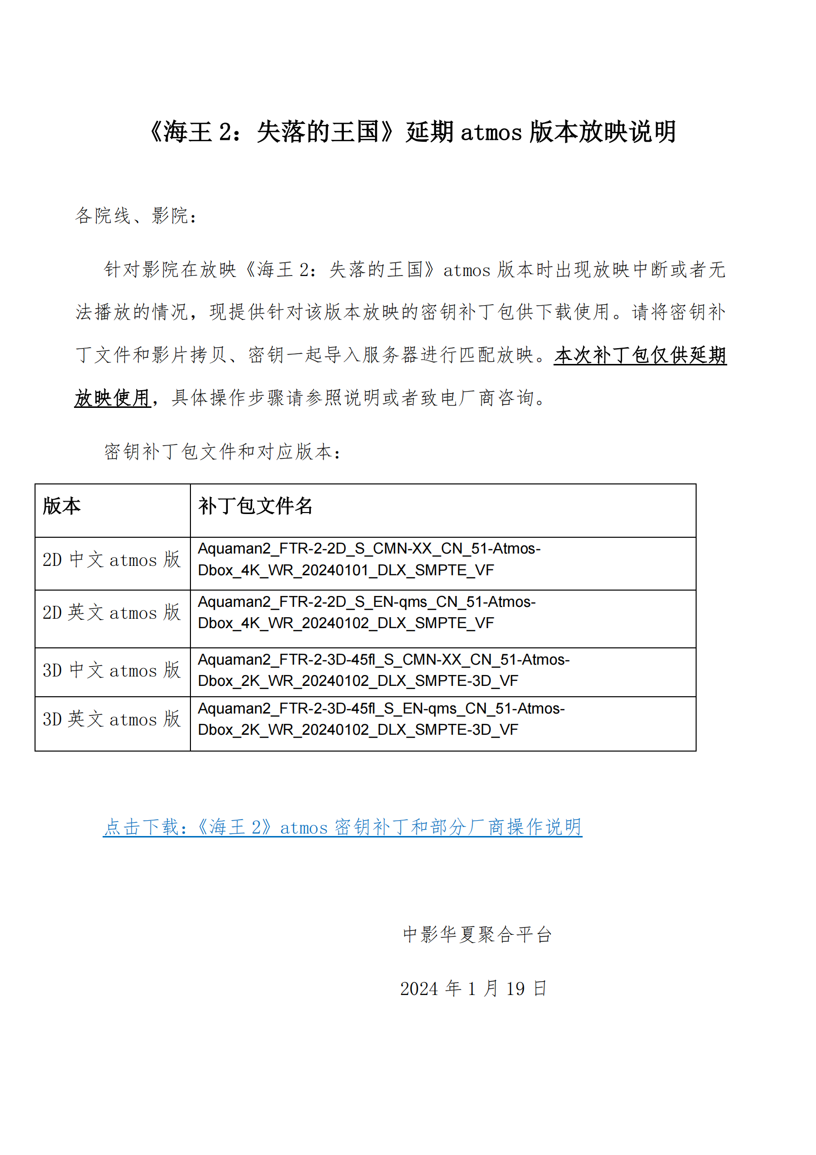 《海王2:失落的王国》延期atmos版本放映说明