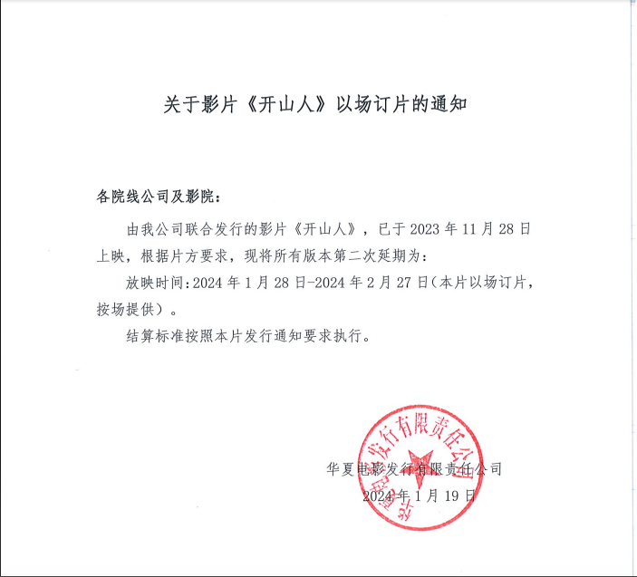 《开山人》以场订片的通知