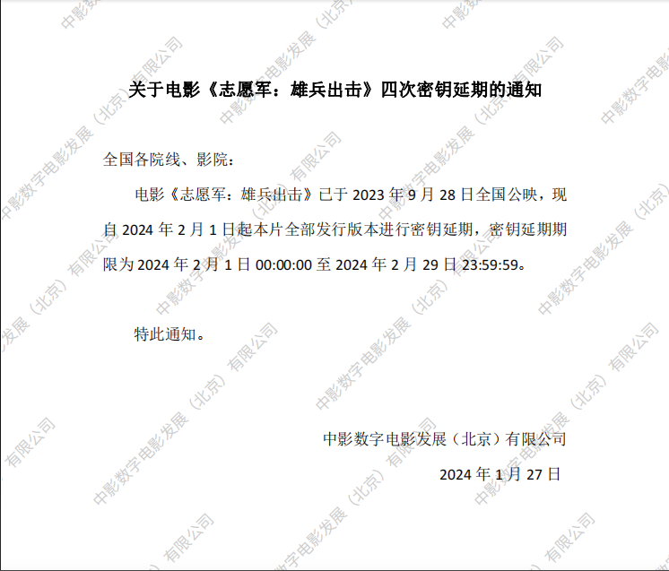 《志愿军:雄兵出击》第四次密钥延期的通知