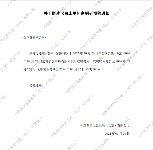 《白床单》第四次密钥延期的通知