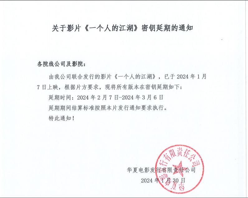 《一个人的江湖》密钥延期的通知