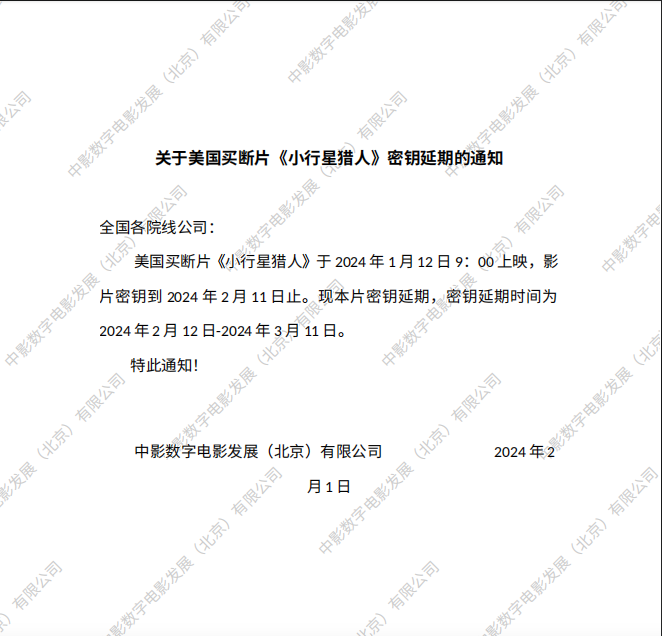《安国夫人(戏曲 京剧)》密钥延期的通知