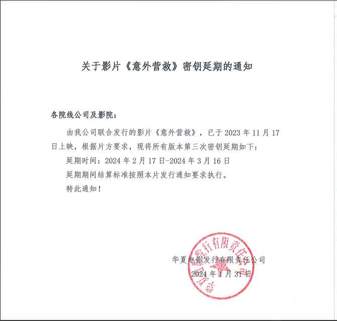 《意外营救》密钥延期的通知