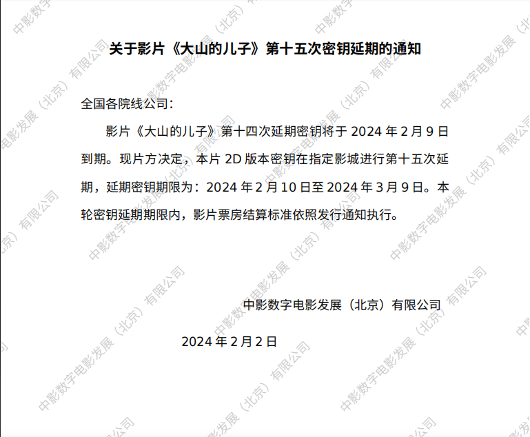 《大山的儿子》第十五次密钥延期的通知