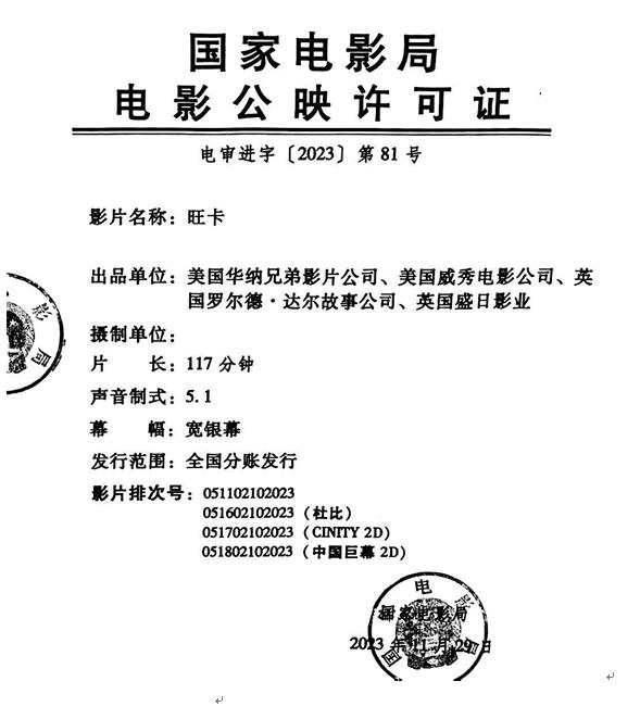 根据贵我双方已经签订的《数字版影片分账发行放映合同》(以下简称“总发行合同”)和排片计划,我公司即将在乙区院线数字影院发行影片《旺卡》,现就该影片的发行和放映工作具体通知(以下简称“本通知”)如下: