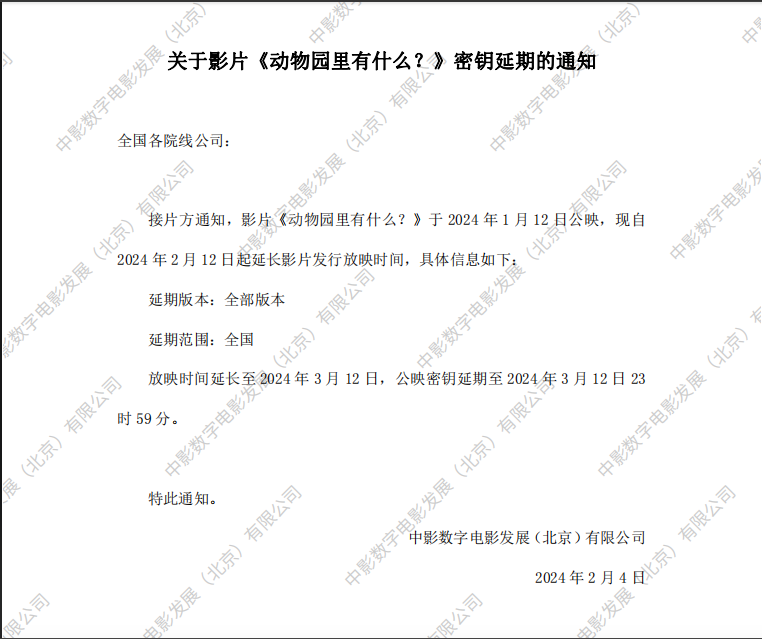 《动物园里有什么?》密钥延期的通知