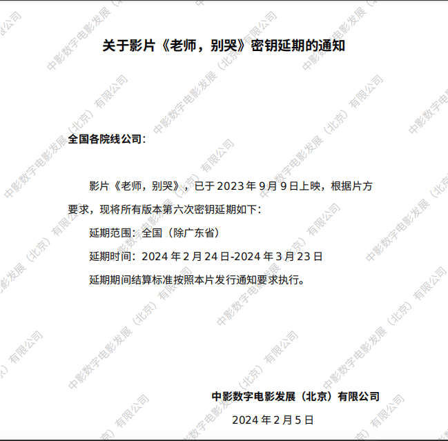 《老师,别哭》密钥延期的通知