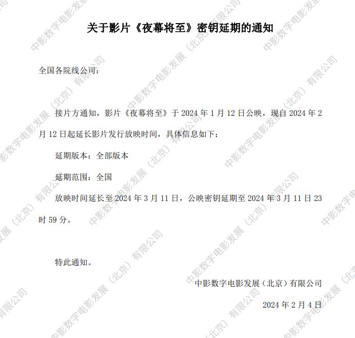 关于影片《水边维纳斯》第九次密钥延期的通知