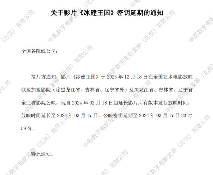关于影片《冰建王国》2次密钥延期的通知