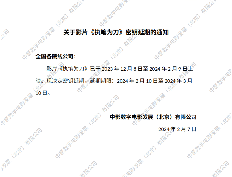 《汉文皇后(戏曲 越剧)》密钥延期的通知