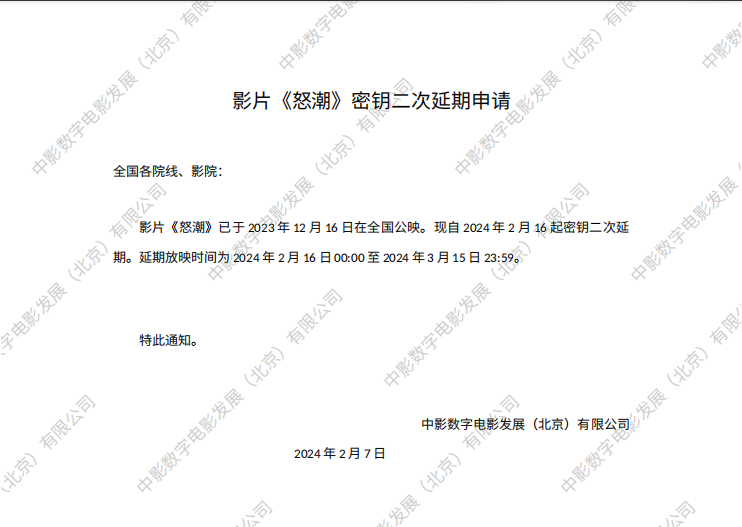 《怒潮》第二次密钥延期的通知