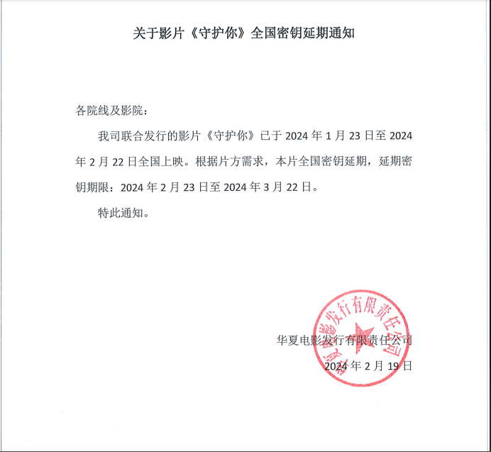 《守护你》密钥延期的通知