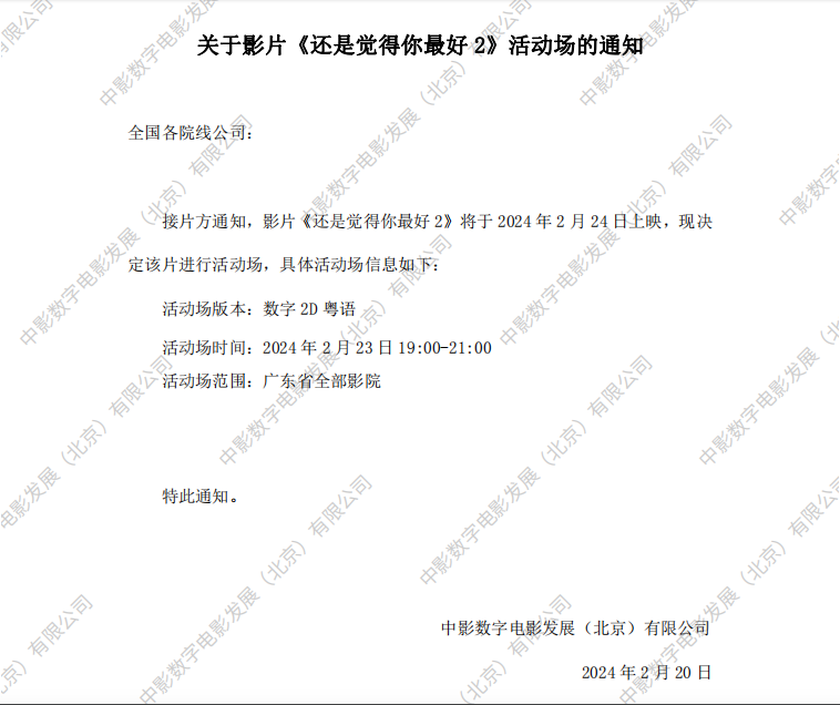 《还是觉得你最好2》活动场的通知