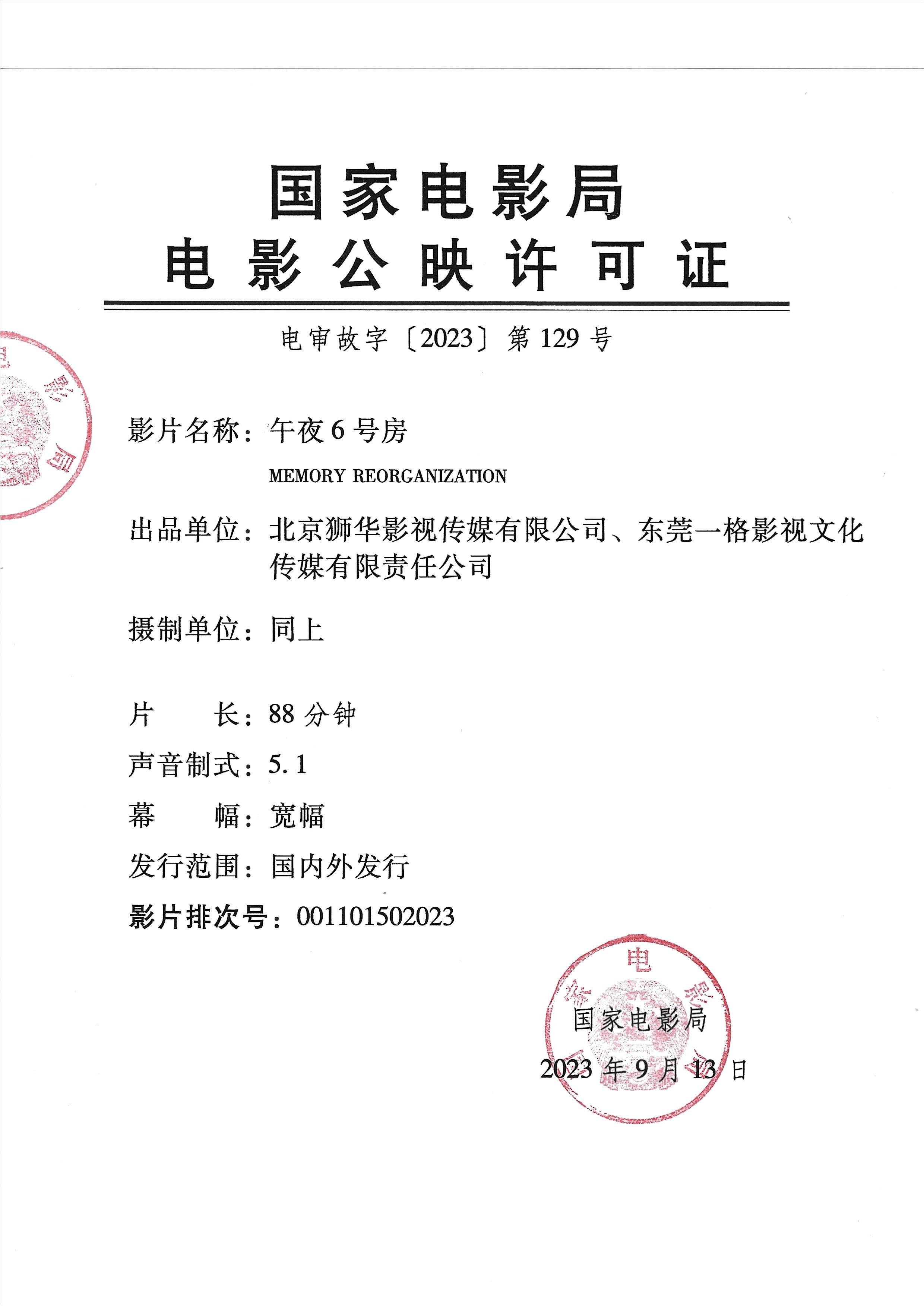《午夜6号房》发行通知