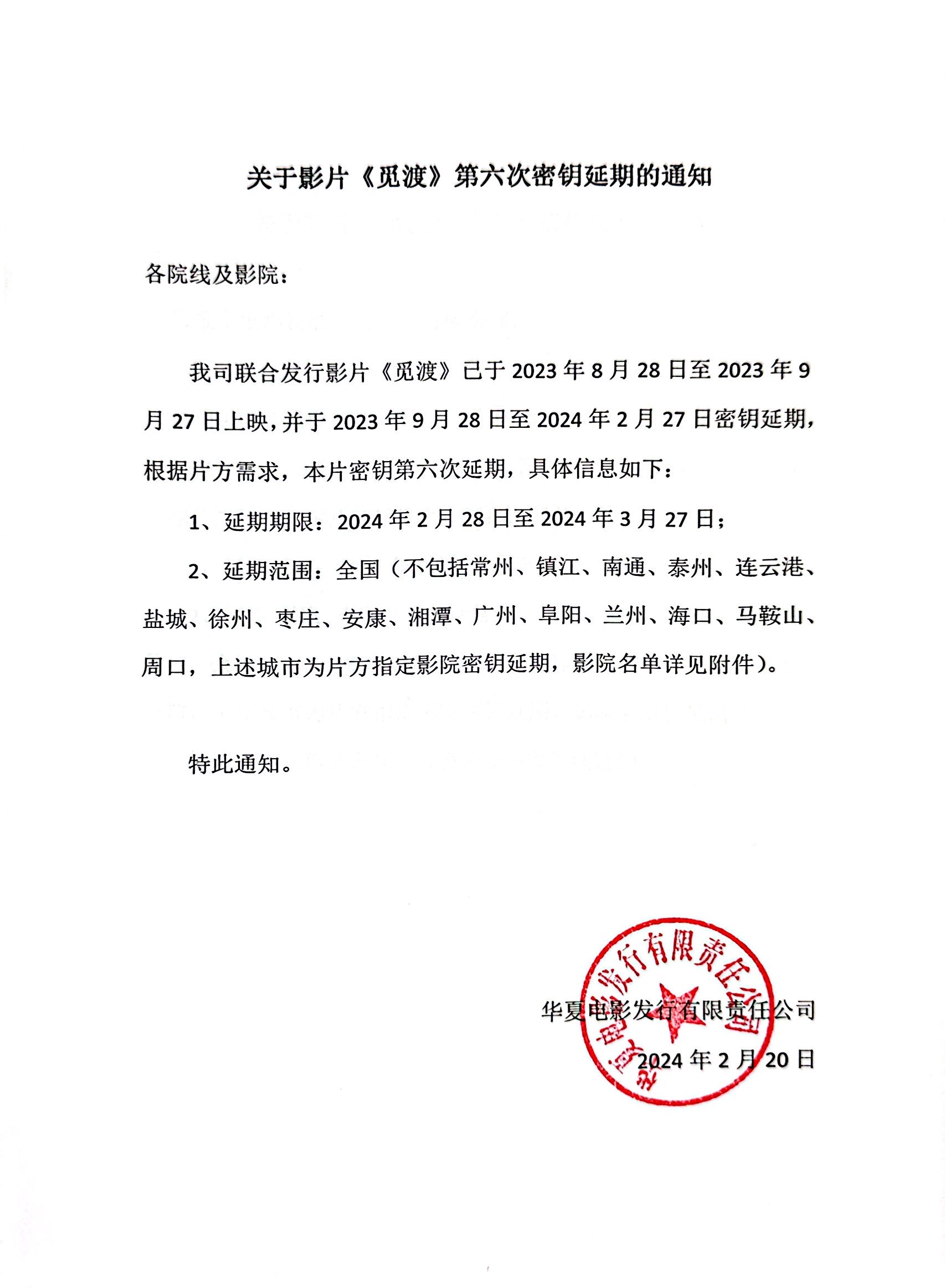 《觅渡》第六次密钥延期的通知