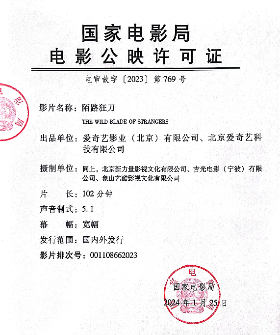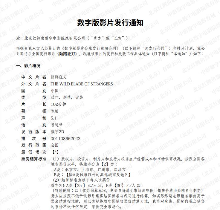 《陌路狂刀》发行通知