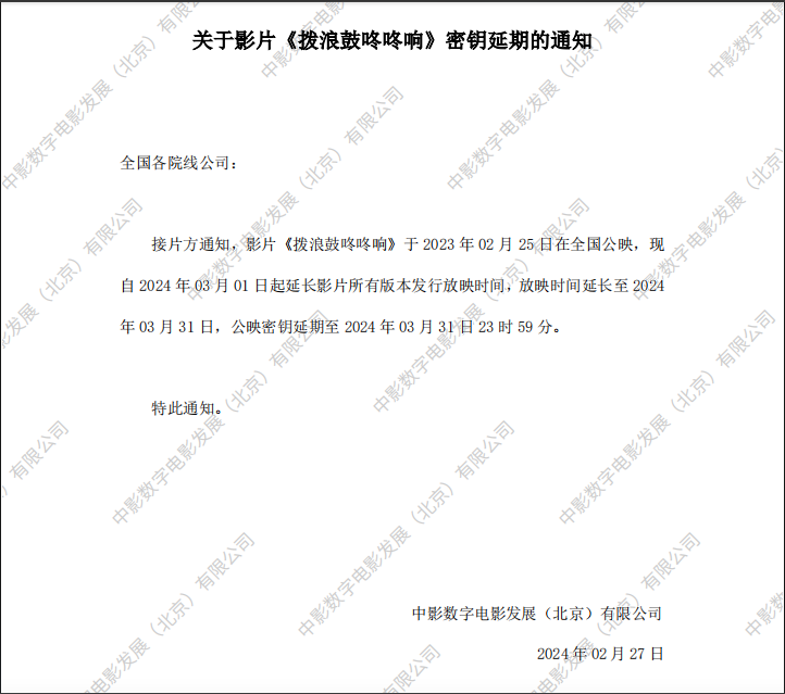 《拨浪鼓咚咚响》第十二次密钥延期的通知